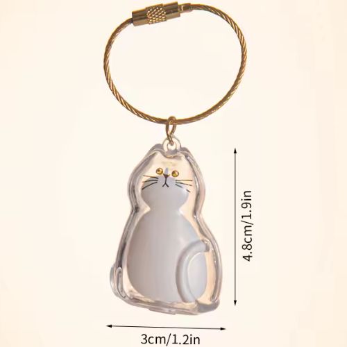 Hoe bewaar je een klein stukje van je geliefde kat (of hond) altijd bij je? Met deze transparante katten-sleutelhanger maak je van iets kleins iets bijzonders. De sleutelhanger bestaat uit een schattig doorzichtig katje met onderin een discreet dopje. Hierin kun je kattenhaar bewaren – bijvoorbeeld na het borstelen, of als dierbaar aandenken aan je huisdier. Een liefdevol detail dat je elke dag met je meedraagt.